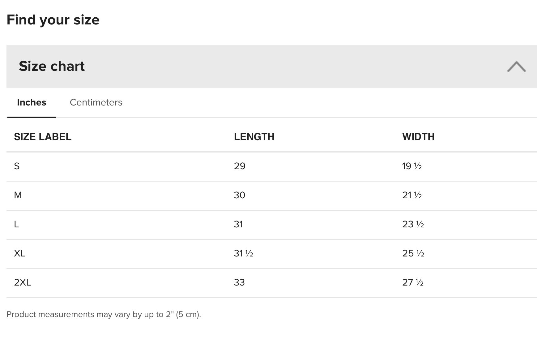 At Revry, we want to make sure you select the best fitting size for your needs. Here you'll see all our measurements of our products featured in the store: